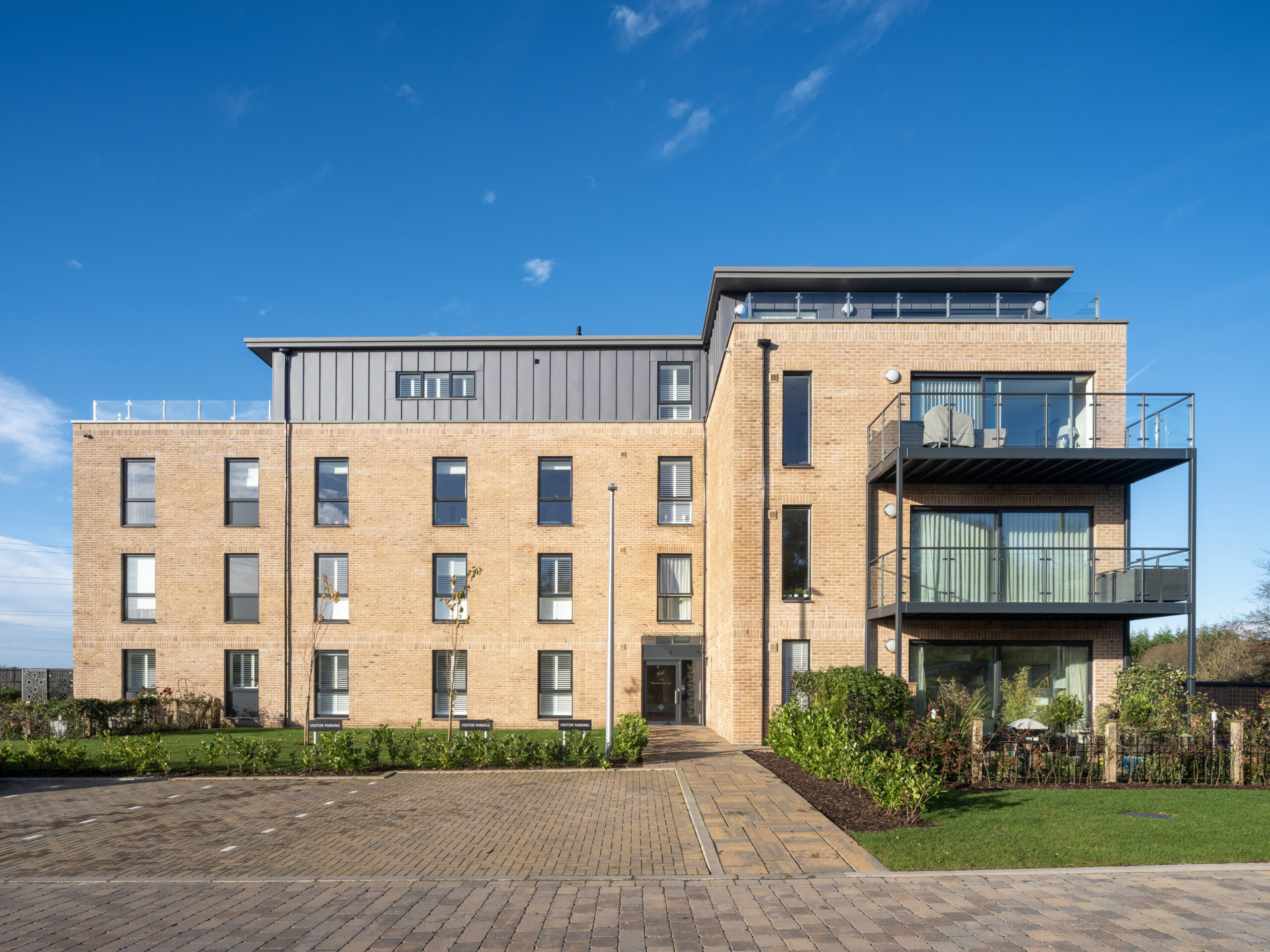 The development includes 28-two-and-three-bedroom apartments arranged across two four-storey buildings. CRGP’s design emphasises proportion, material quality and spatial clarity, incorporating enhanced ceiling heights and well‑considered private outdoor spaces to maximise natural light and views of the surrounding countryside.
